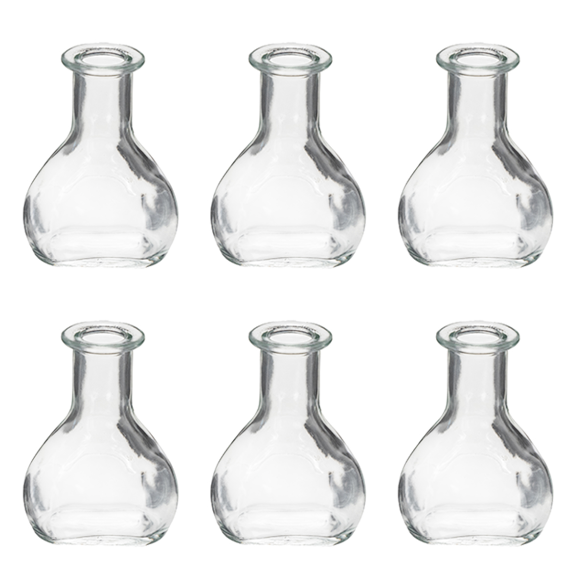 - Juego de 6 mini jarrones de cristal con diseño transparente
