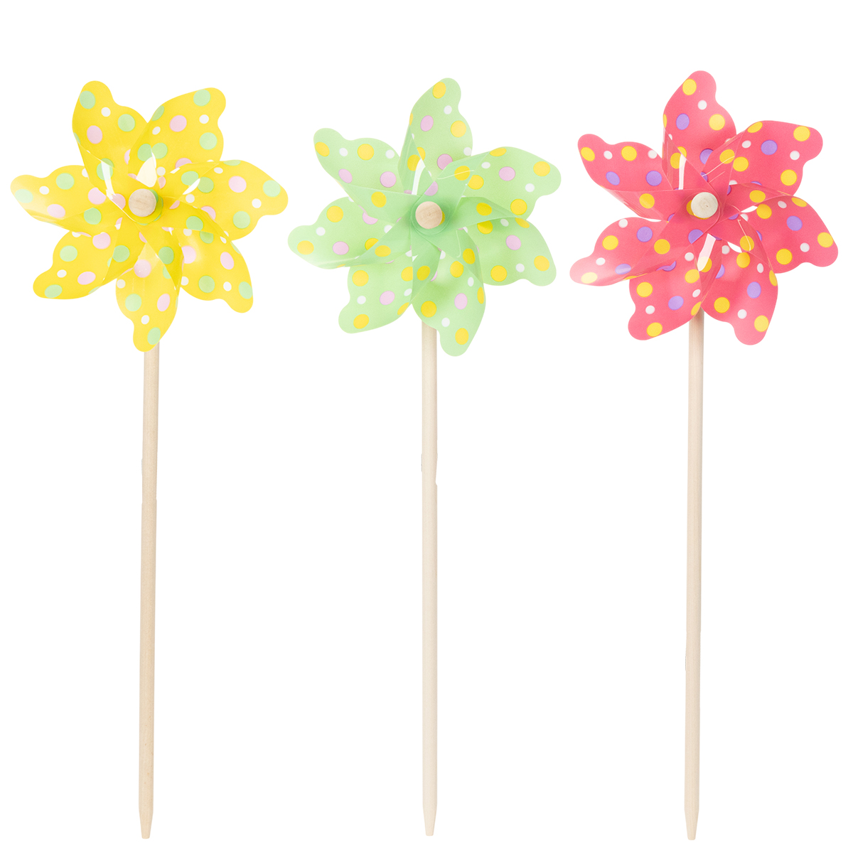 Decoración lúdica: Decoración de jardín con molinos de viento en colores alegres.