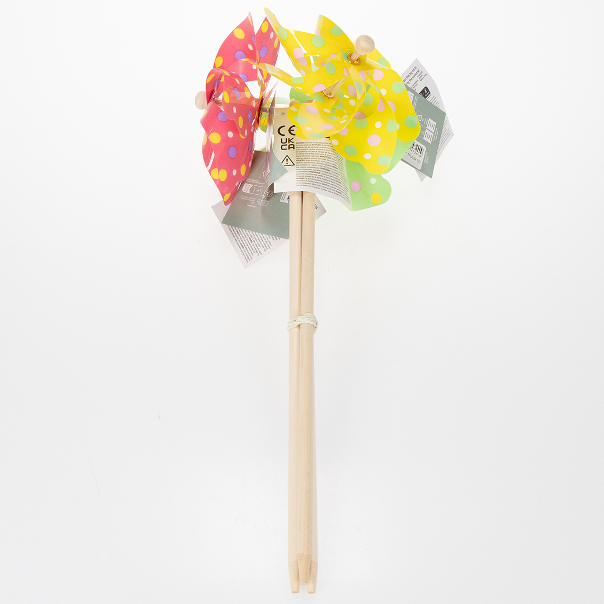 - Material: Plástico (molino de viento), madera (poste)