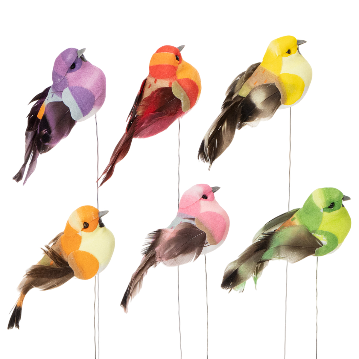 Pájaro artificial con alambre para manualidades, decoración colorida para cualquier época del año, 8 cm, 12 piezas