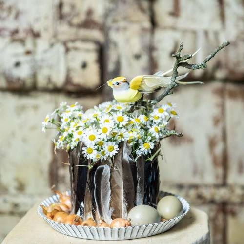 Se ve especialmente agradable cuando abrochas el pájaro de la marca premium VIANA en una rama deco grande, que presentas efectivamente en un florero de piso. ¡Solo o en toda una bandada de pájaros es un verdadero punto de atracción y especialmente un hermoso acento de color! Las tarjetas de felicitación para un regalo para un cumpleaños o para las celebraciones de Pascua también se pueden mejorar visualmente con la decoración y proporcionar un ambiente fresco y primaveral.