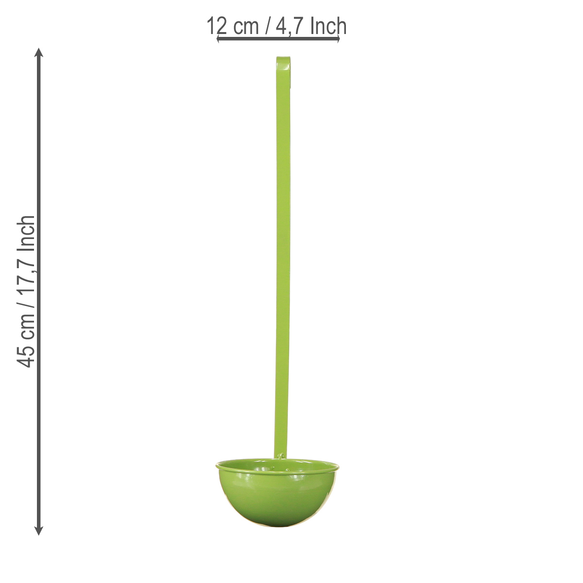 ¿Qué hace que un cucharón decorativo colgante sea tan especial? Este encantador cucharón verde para sopa le da un toque especial a cualquier habitación. Ya sea en la cocina, el salón o incluso en el jardín, sin duda atraerá todas las miradas. Con 45 cm de largo, es un accesorio llamativo y elegante que combina la funcionalidad clásica con la elegancia moderna. ¡Descubre cómo un simple cucharón de metal puede convertirse en el centro de todas las miradas! ¿Buscas algo rústico para alegrar tu día a día? Este cucharón decorativo verde destaca por su original diseño y sus prácticos usos: ya sea como soporte para hierbas en la cocina, como macetero decorativo o como decoración rústica de pared en el salón. Su vibrante color verde combina frescura y naturalidad. ¡Perfecto para quienes aman lo especial!