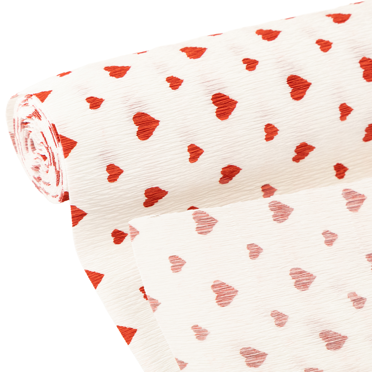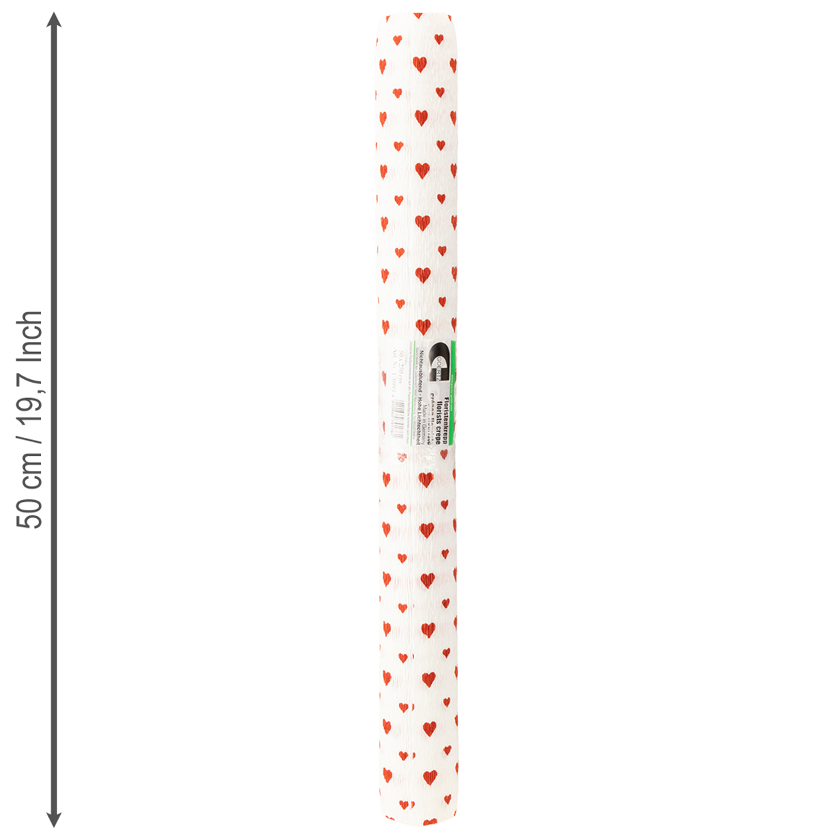 Papel crepé con corazones Crepe de floristería Día de la Madre rojo, blanco 50 × 250cm