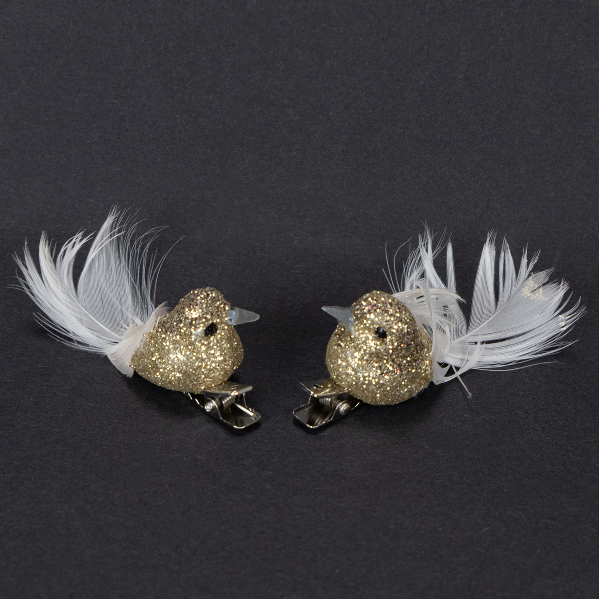 Ilumina la decoración de tu árbol de Navidad con estos brillantes pájaros decorativos con clip dorado, o utilízalos en pares como un par de palomas decorativas para una decoración de boda original.
