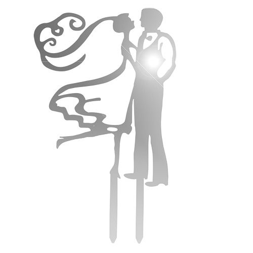 La gloria suprema de cualquier pastel de bodas es el tapón correspondiente. Este complemento con el motivo de la novia y el novio es una verdadera atracción en cada pastel de bodas noble decorado. A todos los invitados les encantará el diseño de filigrana de este enchufe: preste especial atención al pequeño corazón en el velo estilizado de la novia o sus finos tacones altos. La superficie reflejada en ambos lados recuerda a la plata noble y mejora la impresión de elegancia lúdica.Pero no use el enchufe solo como decoración de pasteles: haga una decoración de pared elegante o trence el enchufe en una guirnalda para la celebración de la boda. Decora las puertas de los recién casados o completa tu regalo con este adorno. ¡Casi no hay límites para tu creatividad!