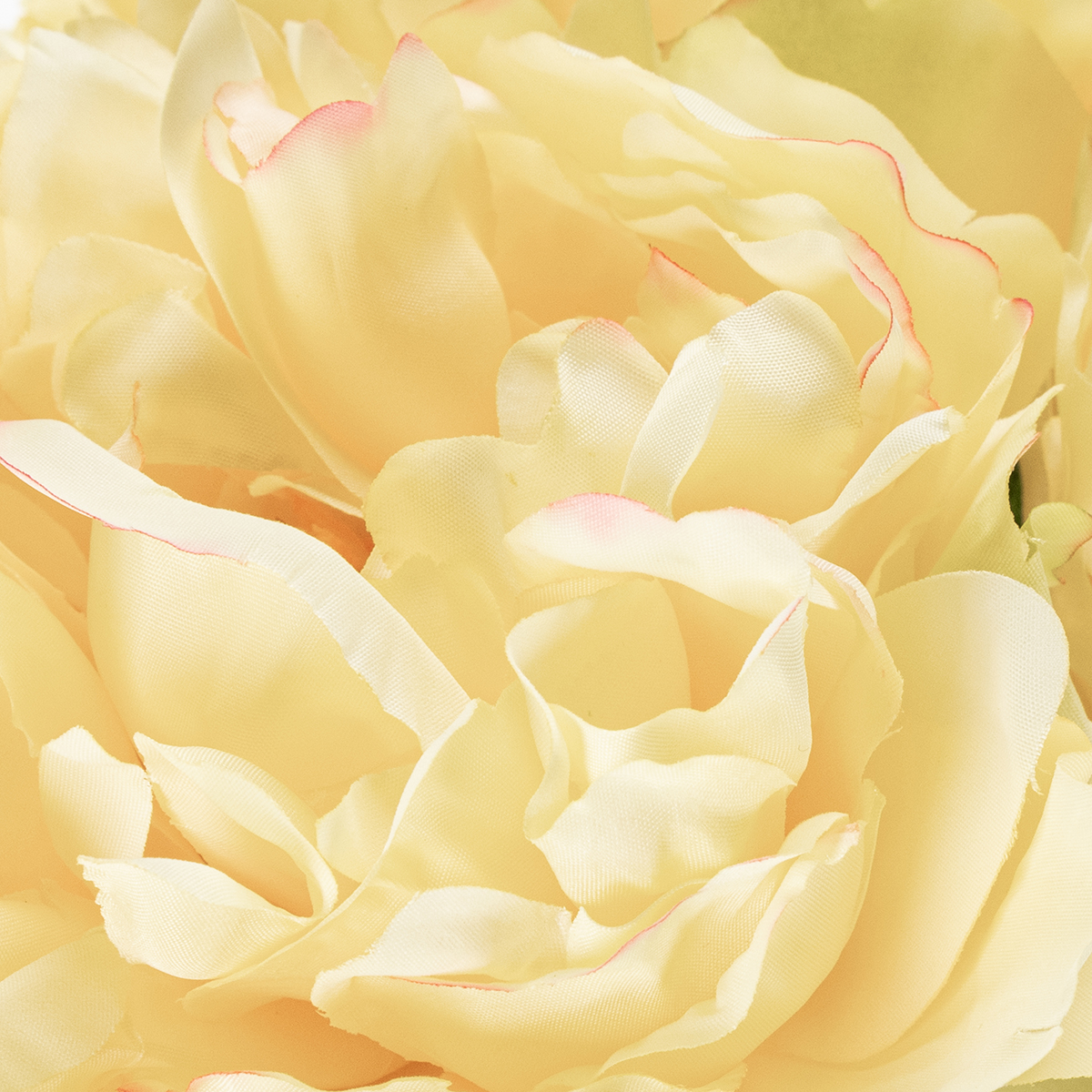 Nuestras peonías artificiales son un verdadero punto culminante para cualquier estilo de decoración. El suave tono amarillo de sus flores crea una atmósfera acogedora y acogedora, perfecta para ambientes modernos, escandinavos o incluso clásicos. Gracias a la tela de seda de alta calidad, las flores lucen increíblemente realistas. Ideales para quienes aman las flores naturales pero desean evitar la molestia del riego constante y el marchitamiento. Estas flores son duraderas, fáciles de cuidar y conservan su belleza original durante años.