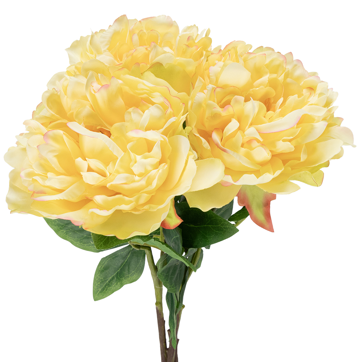 ¿Buscas una manera de enriquecer tus espacios con un encanto atemporal y belleza natural? ¡Nuestras peonías artificiales con grandes flores son justo lo que necesitas! Con 60 cm de altura y un aspecto increíblemente realista, estas flores artificiales renovarán tu hogar u oficina al instante. El vibrante amarillo de las flores, combinado con el verde intenso de las hojas, crea un vibrante toque de color en cualquier habitación. Ya sea individualmente sobre una mesa o combinadas con otros elementos decorativos, estas flores artificiales impresionarán a primera vista y no requieren ningún mantenimiento. Perfectas para quienes desean disfrutar de un arreglo floral elegante durante mucho tiempo. ¿Te parece que encaja con tu concepto de diseño de interiores? ¡Sigue leyendo y compruébalo tú mismo!
