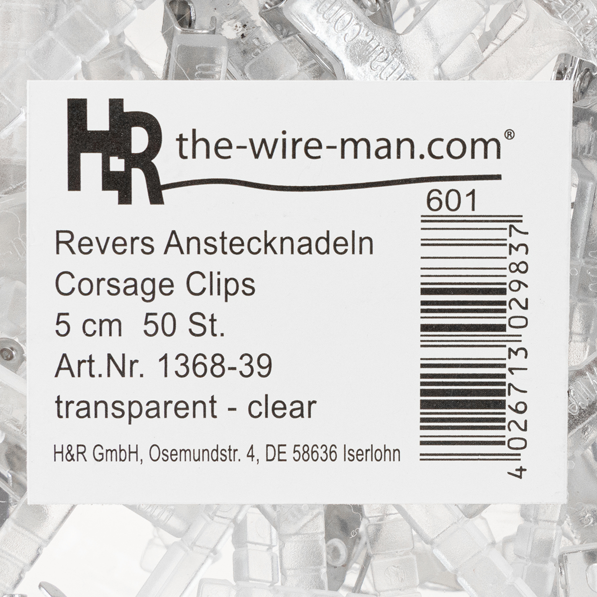 El alfiler de boda hecho de plástico transparente y una aguja plateada se entrega en una caja con un total de 50 piezas y tiene una longitud de aproximadamente 5 centímetros. Por lo tanto, también puede usar la insignia para adjuntar etiquetas de nombre para un taller, pequeñas figuras para una fiesta temática o joyas florales para una noche de gala allí.