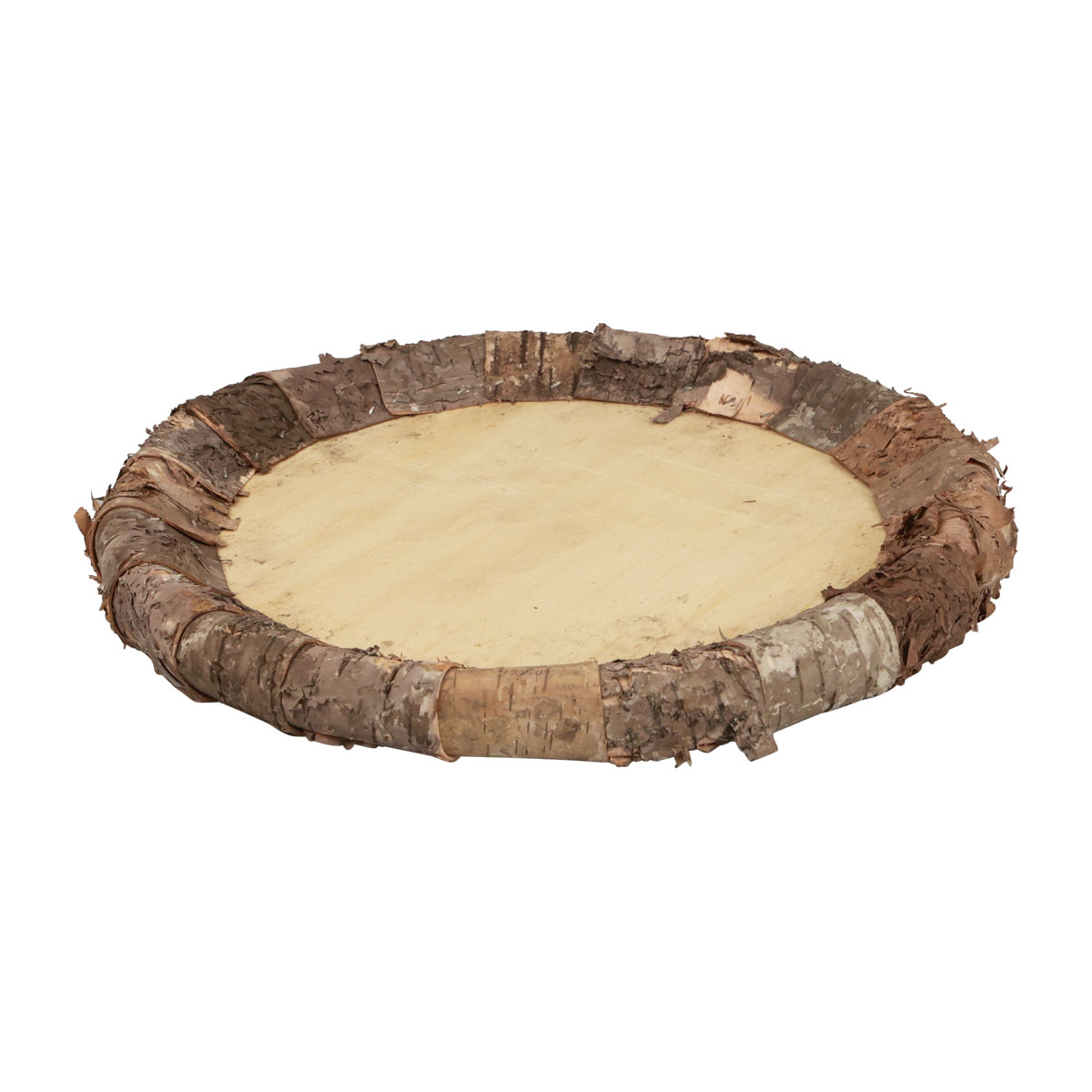 Recibirás la bandeja decorativa de madera con corteza natural en una sola pieza.