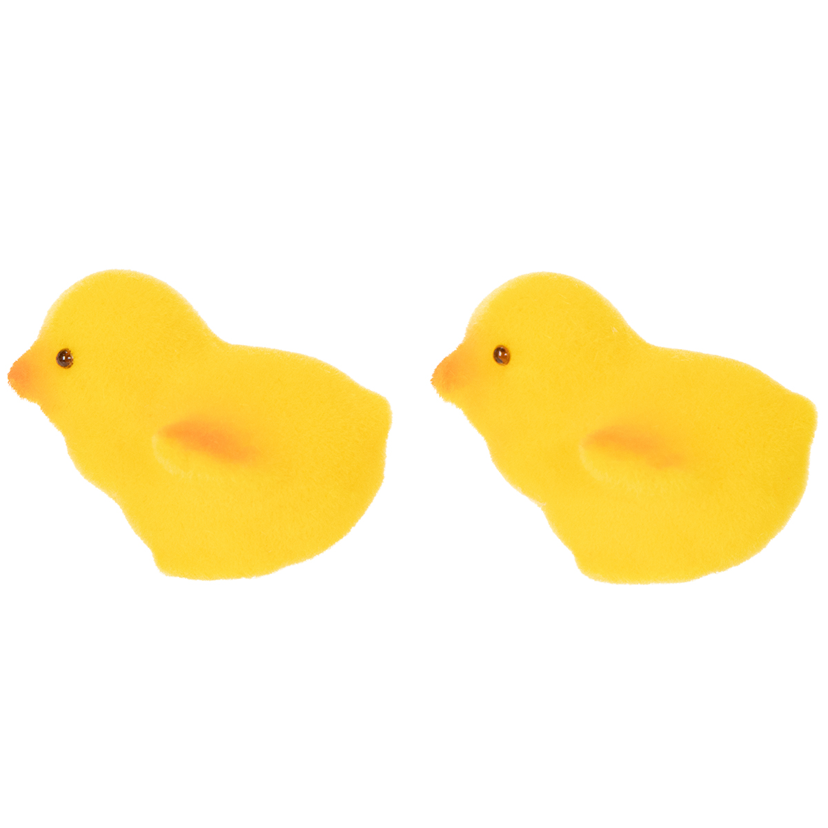- 18 pollitos flocados en amarillo con detalles en naranja.
