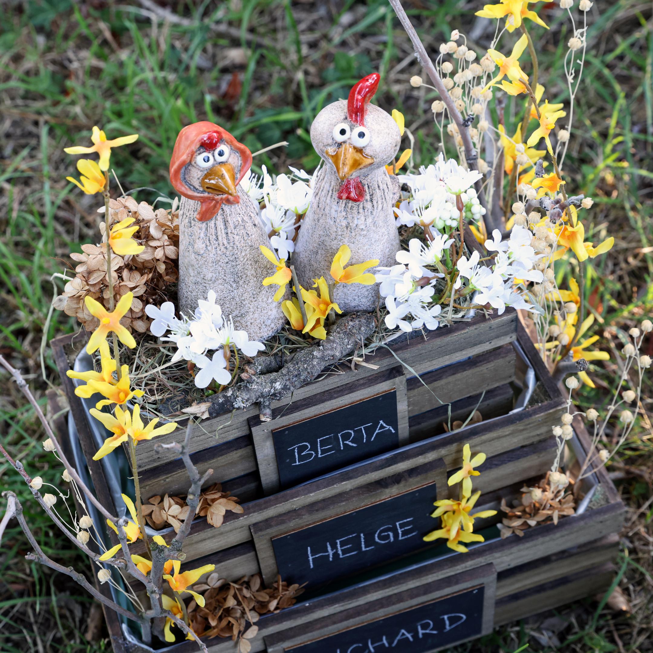 Pollos decorativos de cerámica Gallo y gallina de Pascua Al. 20/22 cm 2 piezas