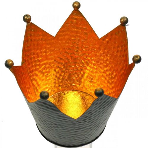 Portavelas corona oro negro decoración de mesa metal H13.5cm