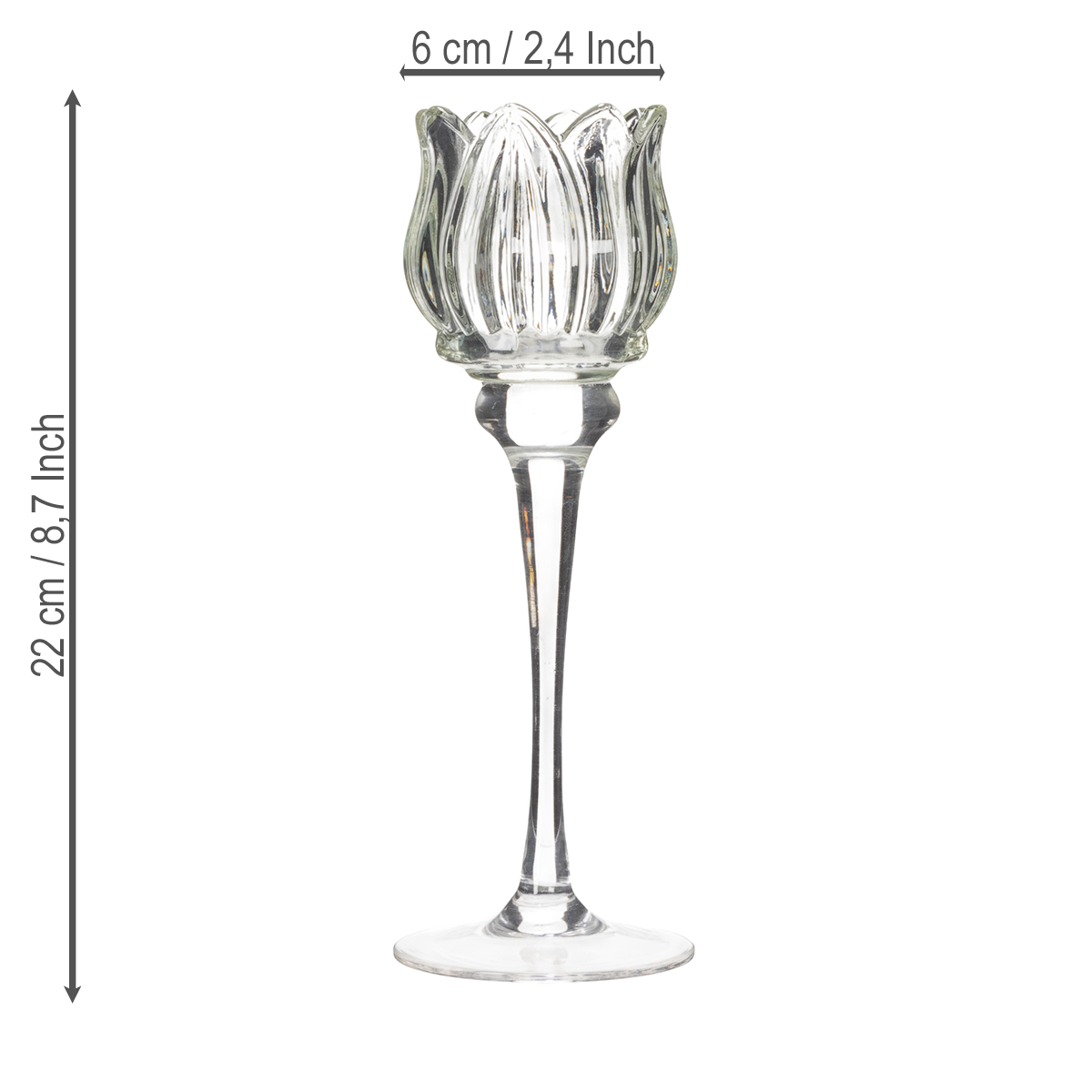 ¿Cuántas veces has deseado que tu mesa luzca espectacular? Ya sea para una recepción de boda, una cena romántica o tu próxima mesa festiva, ¡este portavelas de cristal con diseño floral es la joya de la corona! Con su delicada transparencia y su elegante altura de 22 cm, crea un ambiente que realza cualquier evento. Un portavelas de cristal es difícilmente más elegante y decorativo.