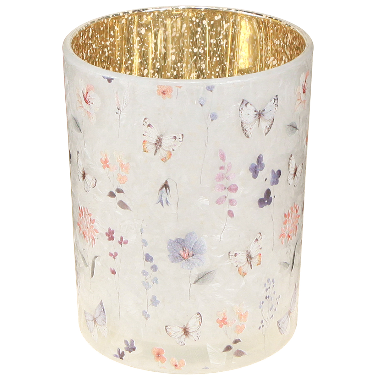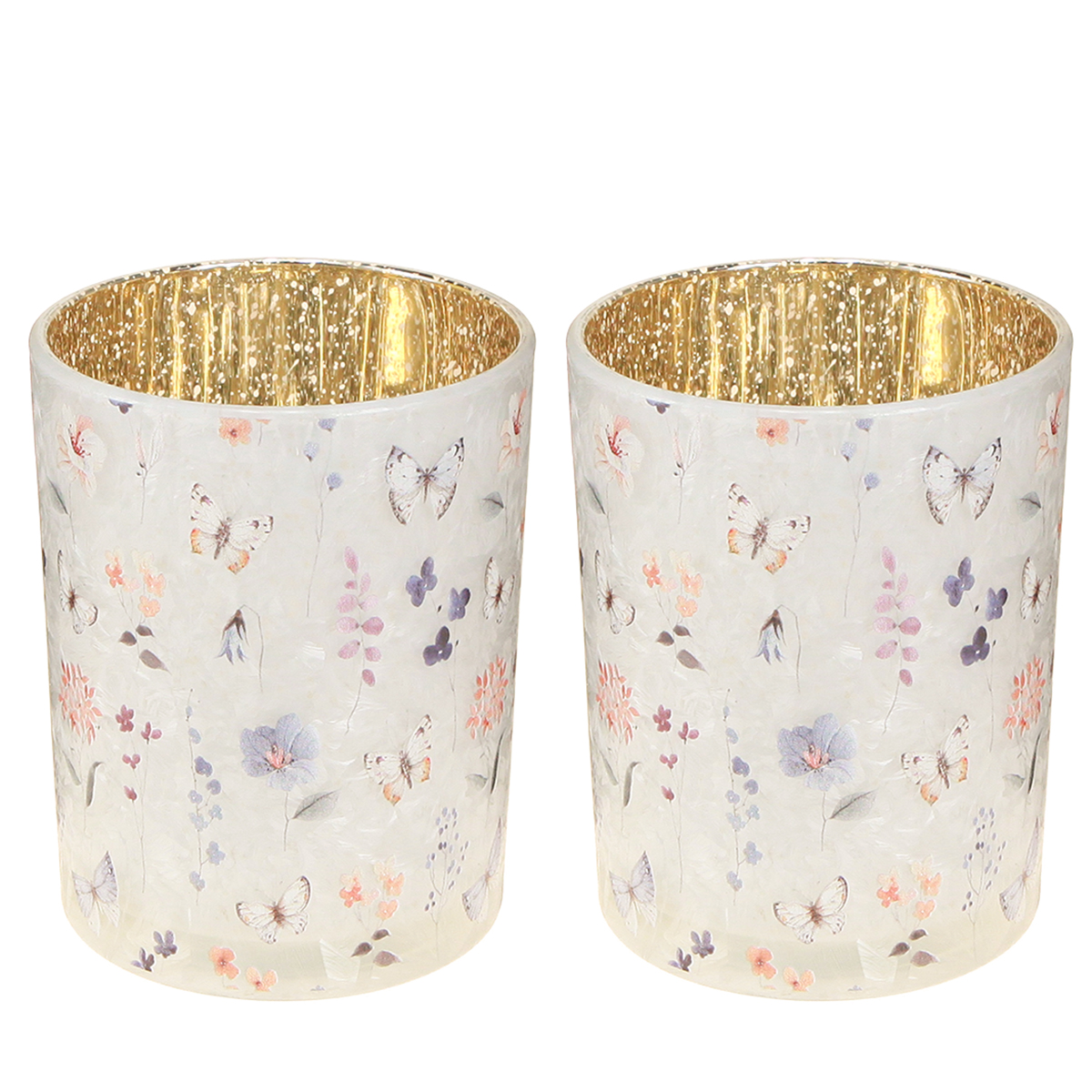 El motivo de mariposa aporta un ambiente luminoso y fresco a cualquier estancia. El interior, con su brillante tono dorado, refleja suavemente la luz de las velas, creando una cálida luz, ideal para tardes relajantes. La delicada artesanía con vidrio de alta calidad hace que estos candelabros sean duraderos y versátiles sin resultar pesados.