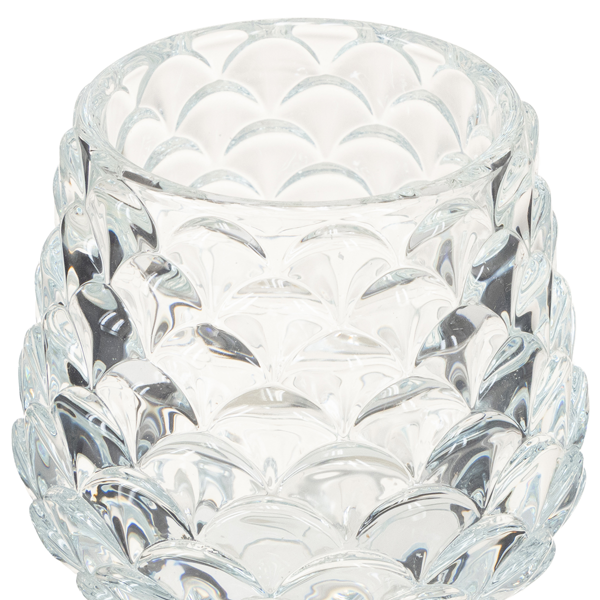 A veces son los pequeños detalles los que marcan la diferencia. ¿Te encanta crear un ambiente acogedor con luz y decoración? ¡Entonces te encantarán los portavelas de cristal con conos y base! Este set, compuesto por dos portavelas de diferentes alturas, impresiona por su sencilla elegancia y su sofisticado diseño, que combina a la perfección con una amplia variedad de estilos de decoración. Las láminas de cristal transparente evocan una encantadora piña: delicadas, elegantes y atemporales. Ya sean un punto focal en el salón, un elemento destacado en la mesa navideña o una romántica fuente de luz para una velada acogedora, ¡estos portavelas son realmente versátiles!