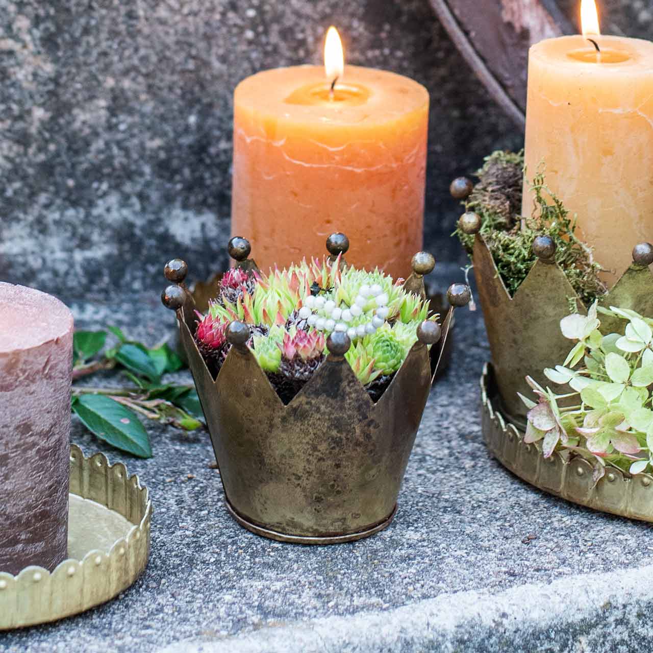 Portavelas de latón con aspecto antiguo de metal Crown Ø10cm H8cm