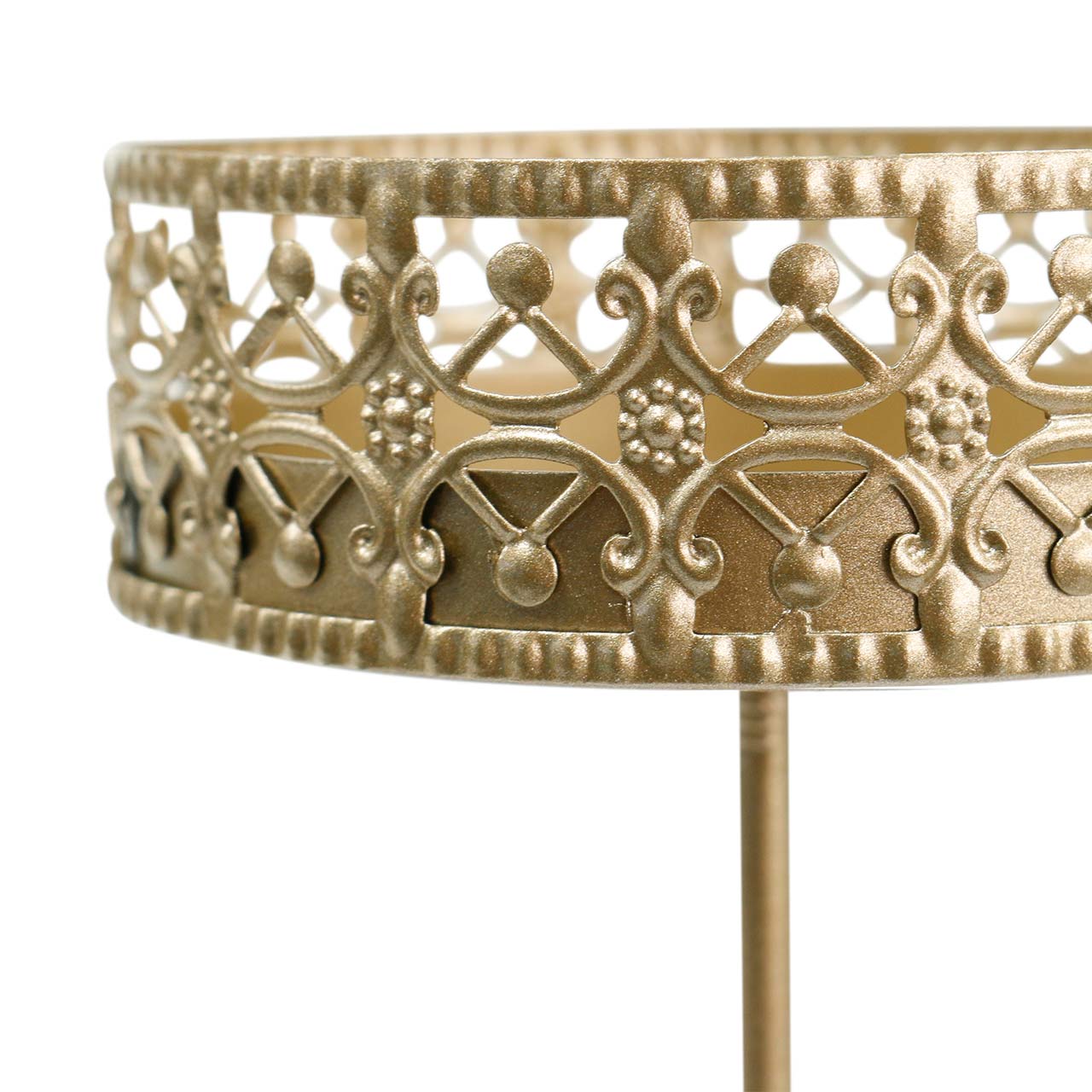 Los candelabros de color dorado para pegar tienen un punzonado decorativo de elementos florales con un relieve detallado de alta calidad. Los candelabros de aspecto antiguo pueden contener velas de hasta 7 centímetros de diámetro.
