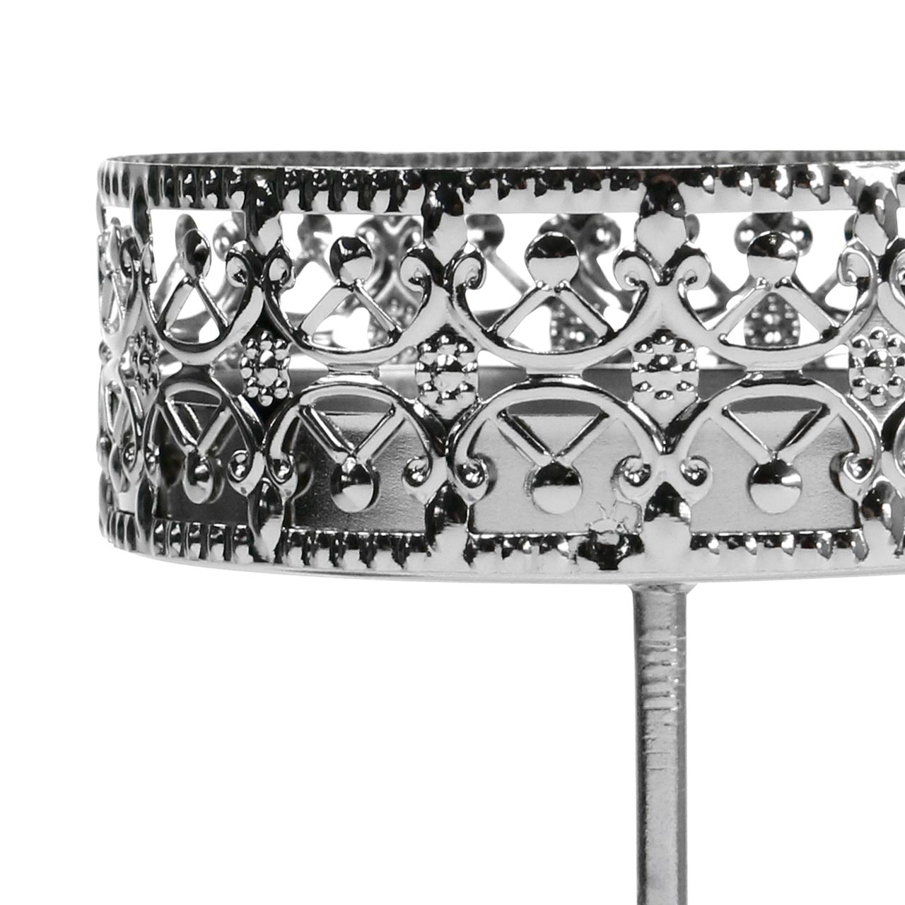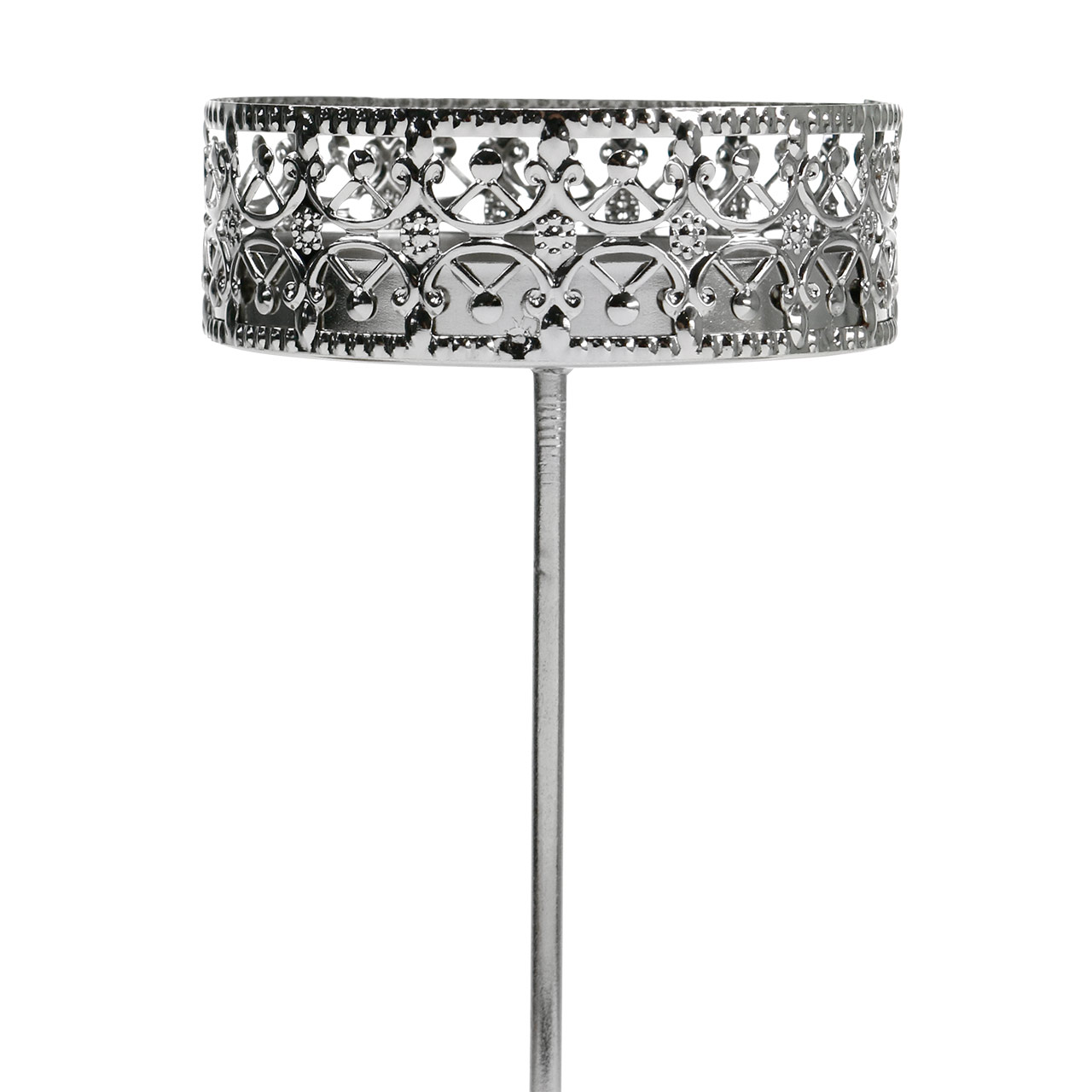 Cada uno de los candelabros de color plateado tiene una púa estable y bastante larga con la que se puede insertar fácilmente en diferentes superficies. Ya sea para arreglos florales en una fiesta en el jardín o como un elemento decorativo romántico en una boda, los hermosos portavelas de aspecto vintage ofrecen muchos usos posibles.