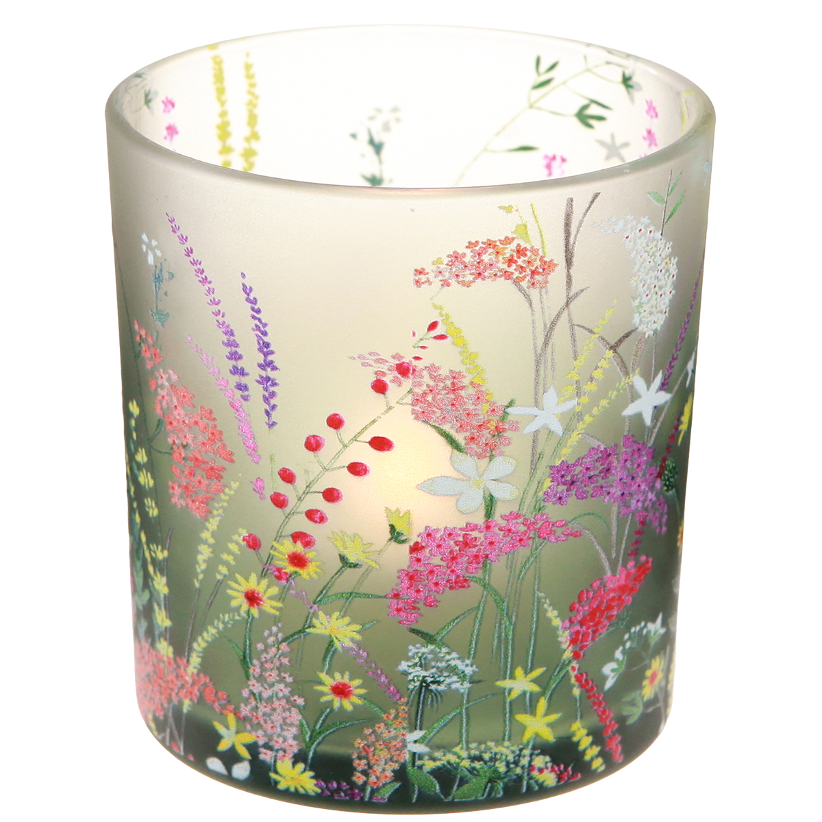 Portavelas vidrio primavera verano flores Al.8cm 6 piezas
