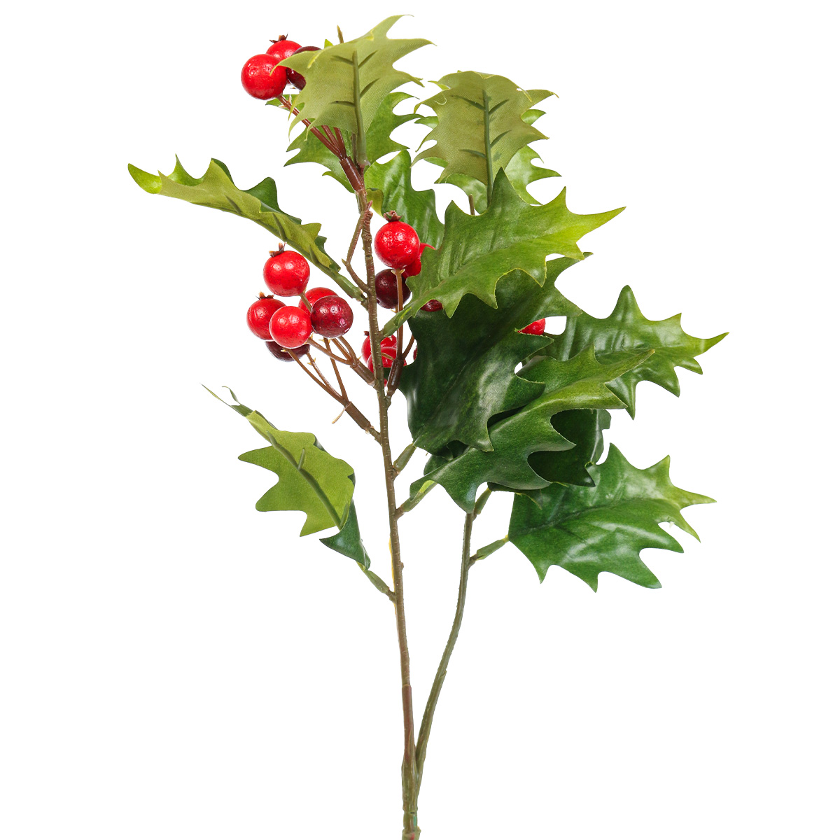 Toca las bayas y notarás que el interior se abre ligeramente como bayas reales. Además de las bayas rojas como punto de atracción, los otros elementos de la planta artificial, como las hojas, también están diseñados con gran atención al detalle. Irregular como el acebo real, las hojas están claramente definidas y son muy realistas con las nervaduras de las hojas en verde.