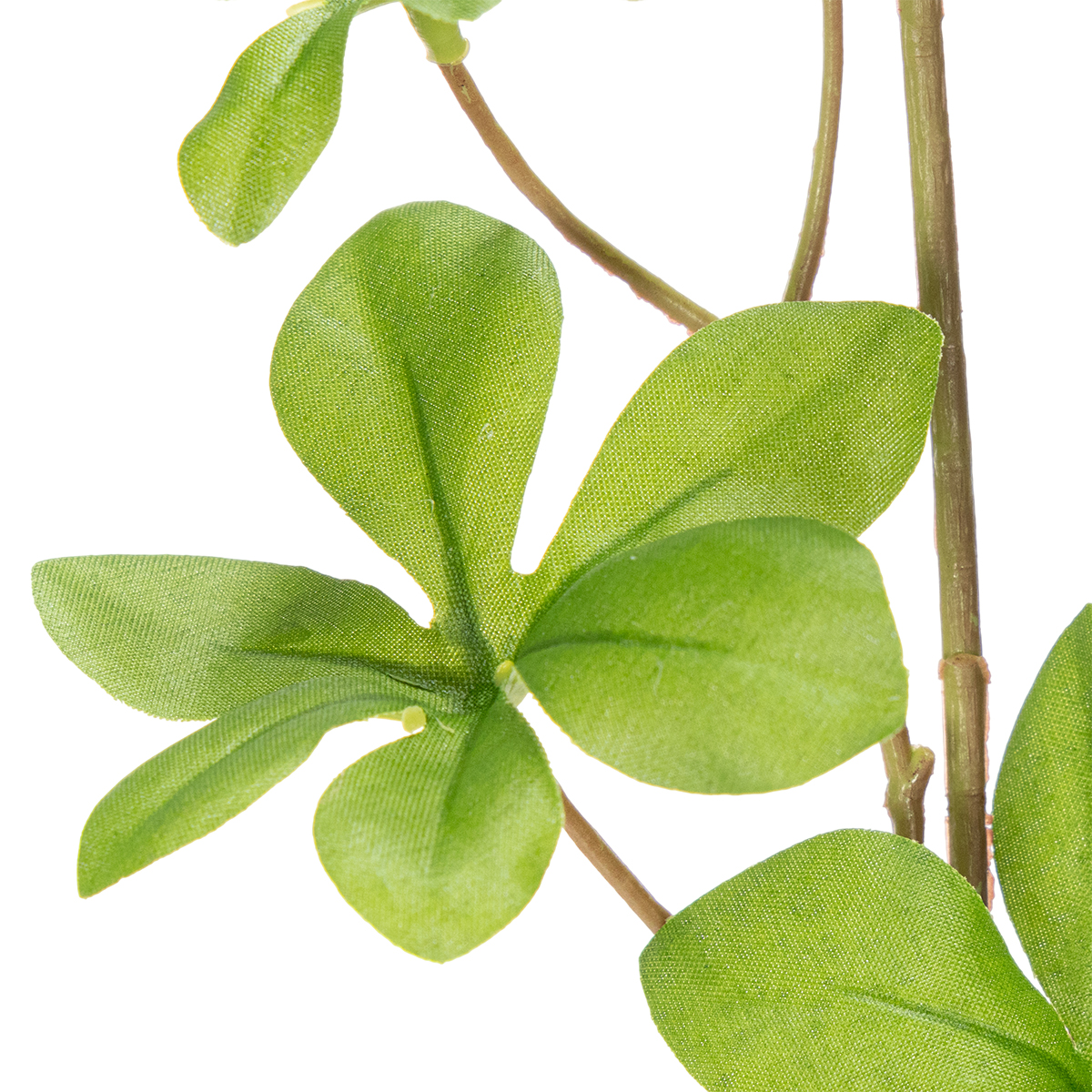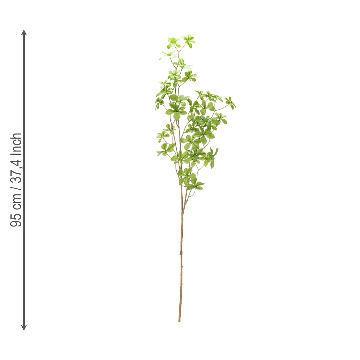Con una impresionante altura de 95 cm, esta rama artificial de interior es un verdadero punto de atracción, ya sea individualmente en un sencillo jarrón o como parte de un arreglo más grande. Los suaves tonos verdes de sus hojas transmiten una frescura natural que revitaliza al instante cualquier ambiente. Ideal para la decoración del salón, pero también un elegante complemento para oficinas y escaparates. Quienes busquen un diseño moderno con un toque urbano se enamorarán de esta rama artificial.