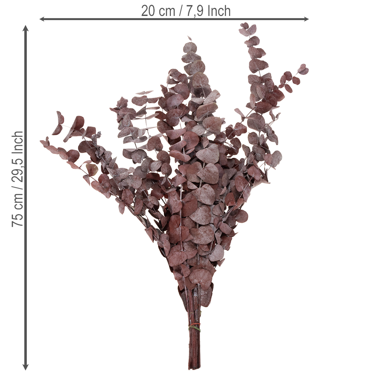 Ramas de eucalipto, eucalipto preservado, flores secas, rojo, 75cm, 150g