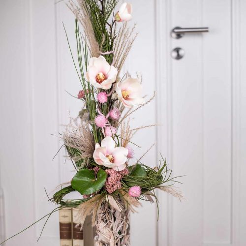 ¡Sorpréndete con el realismo de estas ramas artificiales de magnolia rosa! La magia especial de las magnolias es que las flores se abren antes de que se sequen las hojas. Esta rama decorativa también tiene muchas flores multicolores en lugar de hojas, algunas de las cuales todavía están cerradas. Los capullos verdes realistas complementan la decoración de magnolia.Para decoraciones de primavera individuales, por supuesto, puede quitar las magnolias artificiales del ramo y usarlas individualmente. ¿Quizás le gustaría crear una corona primaveral con ramas reales con estas flores de magnolia artificial? - Luego trabajar las ramas decorativas entre los materiales naturales. Esta proximidad también hace que las flores artificiales parezcan reales. ¡La rama de magnolia da la bienvenida a la primavera en la corona de la puerta como en la decoración de la mesa!