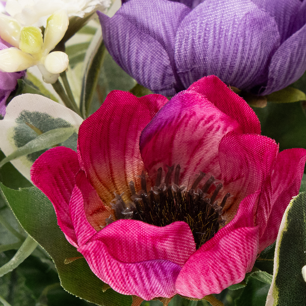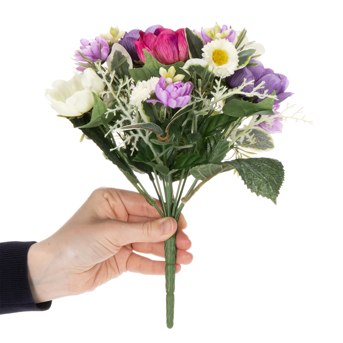 ¡Ya está en el aire! Transforma tu hogar en un remanso de paz y revitaliza tu decoración, sin necesidad de mantenimiento. El ramo de anémonas artificiales lo hace fácil. Este colorido arreglo de anémonas, margaritas y detalles morados increíblemente realistas aporta un toque natural a tu hogar. La combinación de colores vibrantes y delicado diseño floral complementa a la perfección los estilos de interior modernos y añade un toque elegante a cómodas, mesas o recibidores. Ya sea como un elegante centro de mesa para el salón o como una alegre bienvenida en el escritorio de tu oficina, este compacto ramo (20 cm de ancho x 26 cm de alto) te alegrará el día. ¿Te apetece? ¡Sigue leyendo para descubrir más sobre este versátil detalle!
