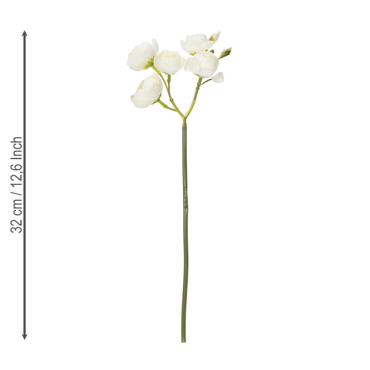 ¿Un toque fresco de primavera todo el año? ¡Por qué no! Este ramo de ranúnculos artificiales en blanco radiante aporta una elegante decoración floral a tu hogar que nunca se marchita y no requiere mantenimiento. Es especialmente efectivo en el salón, en el alféizar de la ventana o como un detalle llamativo en la oficina. Con 32 cm de altura y cinco tallos, crea una apariencia auténtica, casi indistinguible de las flores naturales. Estas flores artificiales son perfectas para quienes aprecian el encanto natural de los ranúnculos y valoran su belleza duradera. Una verdadera maravilla decorativa, versátil y versátil para una gran variedad de ambientes.