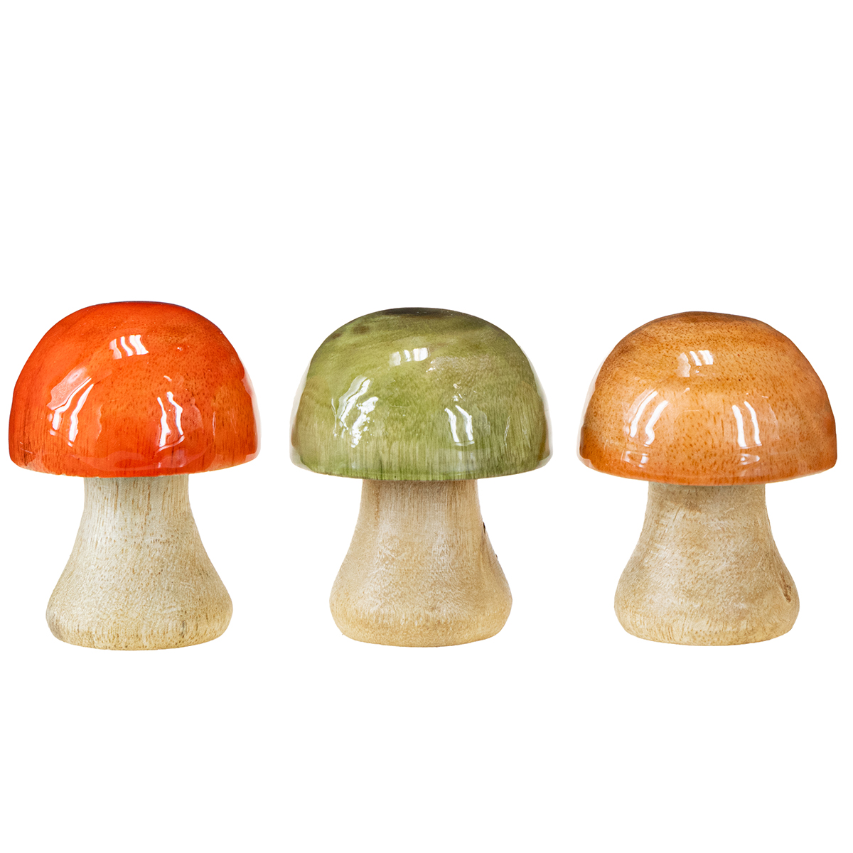 Nombre del producto: Setas de madera decoración otoñal setas verde rojo naranja H6.5cm 9 uds