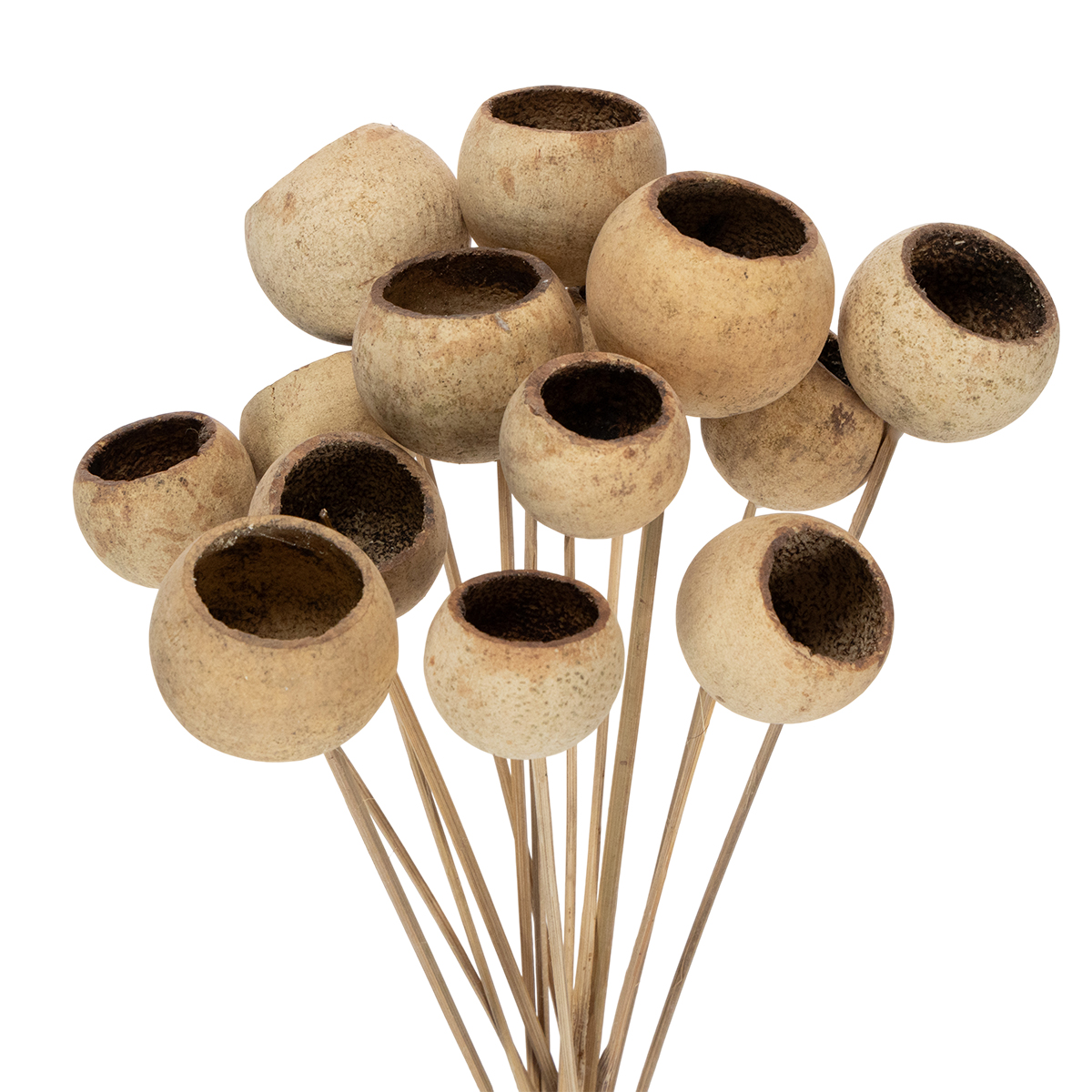 Con su forma única, la Bell Cup recuerda a una calabaza de calabaza ahuecada, por lo que es una adición bienvenida a una decoración particularmente natural. Esta Bell Cup Mix de color natural en el tallo también tiene la ventaja de que las frutas ahuecadas se unen en diferentes tamaños a fuertes palos de madera y, por lo tanto, pueden procesarse fácilmente y con múltiples facetas. Fije los tallos, por ejemplo, en un compuesto adhesivo y de esta manera dé a los arreglos rústicos de otoño un toque muy especial.