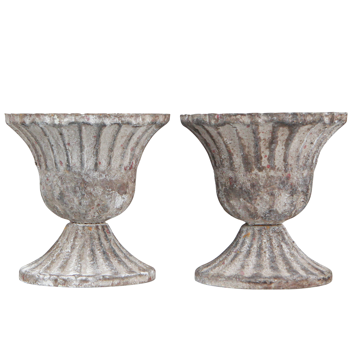 Taza Decorativa Cáliz Antiguo Rústico Gris Blanco Ø8cm H8.5cm 2ud
