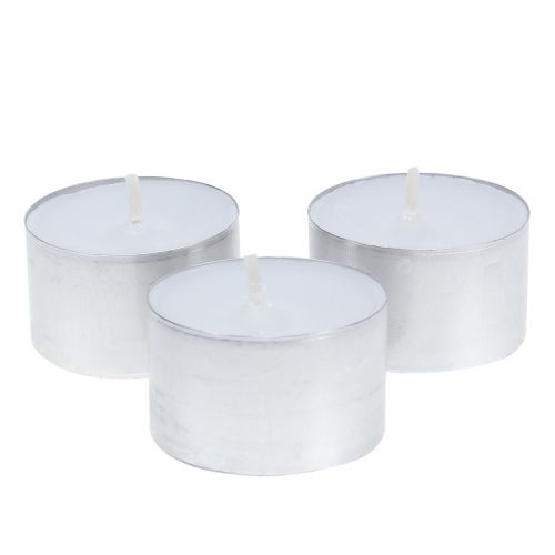 Las candelitas blancas con carcasa de aluminio vienen en un práctico paquete de 75 para usted y cada una tiene un diámetro de aproximadamente 4 centímetros y una altura de aproximadamente 3 centímetros. Además, puntúan con un tiempo de combustión extra largo de aproximadamente 7 a 8 horas.