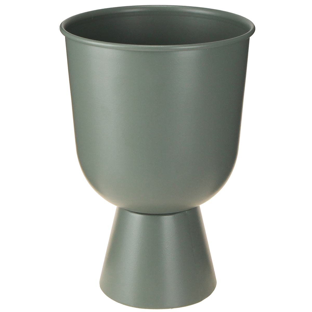 Este jarrón en forma de copa combina con encanto forma y funcionalidad. Con una altura de 23 cm y un diámetro de 16 cm, ofrece amplio espacio para arreglos florales más grandes o decoraciones originales. Su cuerpo de metal verde mate le confiere un aspecto elegante que complementa a la perfección estilos de decoración modernos como el estilo escandinavo chic o el minimalista. Para un ambiente más acogedor, combínalo con tonos tierra o elementos de madera cálida.