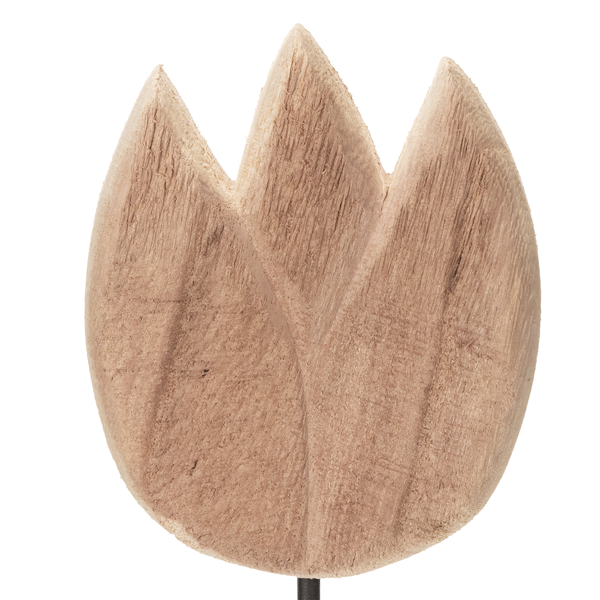 El tulipán simboliza tradicionalmente el amor, la primavera y los nuevos comienzos: un símbolo de ideas frescas y nuevos comienzos. Con su sobria elegancia, también expresa estilo y buen gusto, lo que lo hace ideal para quienes buscan una decoración sutil pero impactante. El acabado neutro de la madera realza aún más la armonía y la naturalidad.