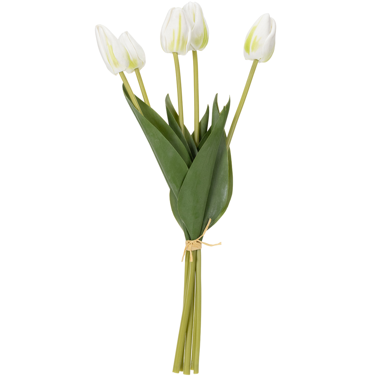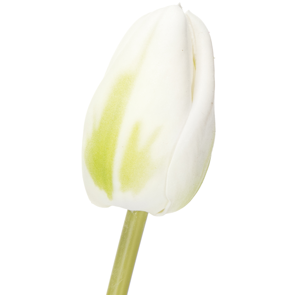 - Perfecto para arreglos de mesa: combina los tulipanes artificiales blancos con accesorios de temporada como piñas, velas o musgo.