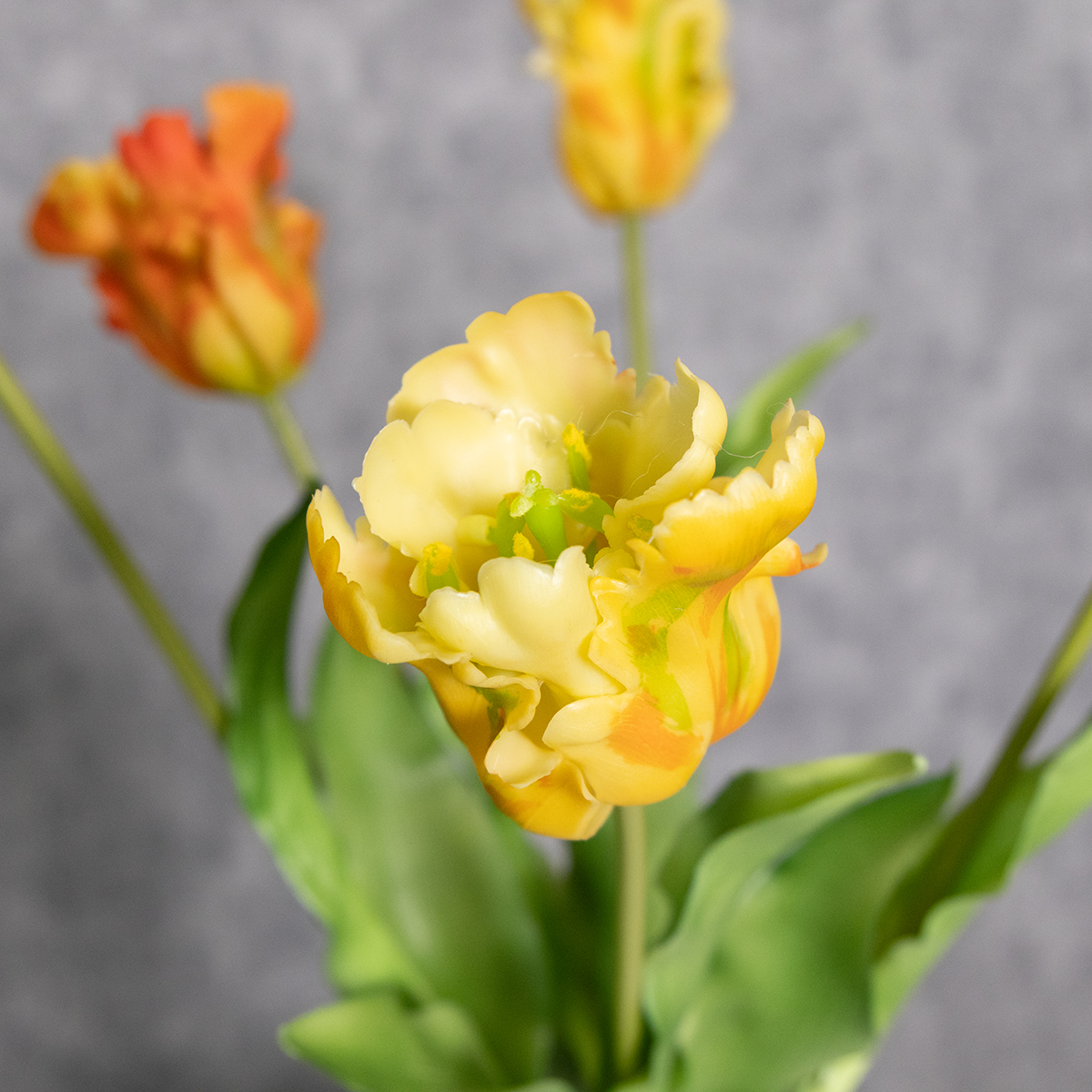 Estos tulipanes artificiales son un verdadero punto de atracción e impresionan por su aspecto auténtico. Con 53 cm de alto y 8 cm de diámetro, tienen el tamaño perfecto para exhibirlos individualmente en un jarrón estrecho o como un elegante ramo en un gran jarrón de pie. Gracias al poliéster y plástico de alta calidad, las flores y las hojas son suaves y conservan sus vibrantes colores. Una característica especialmente práctica: son increíblemente versátiles. Ya sea como elegante decoración para el salón, como toques de temporada en primavera o como elemento destacado en celebraciones, su vibrante color es un verdadero estímulo para el ánimo. Combínalos fácilmente con otras flores artificiales para crear ramas armoniosos. Para un look minimalista, simplemente colócalos en un jarrón alto de cerámica blanca. ¿El estilo? ¡Atemporal y moderno! Estos tulipanes se integran con elegancia en estilos de decoración escandinavos, modernos y clásicos. Un consejo más: son prácticamente indestructibles, perfectos para hogares con niños o mascotas. Quienes cambian de decoración con frecuencia apreciarán su flexibilidad: simplemente cambia el jarrón, prueba un nuevo arreglo y crearás un nuevo concepto decorativo.