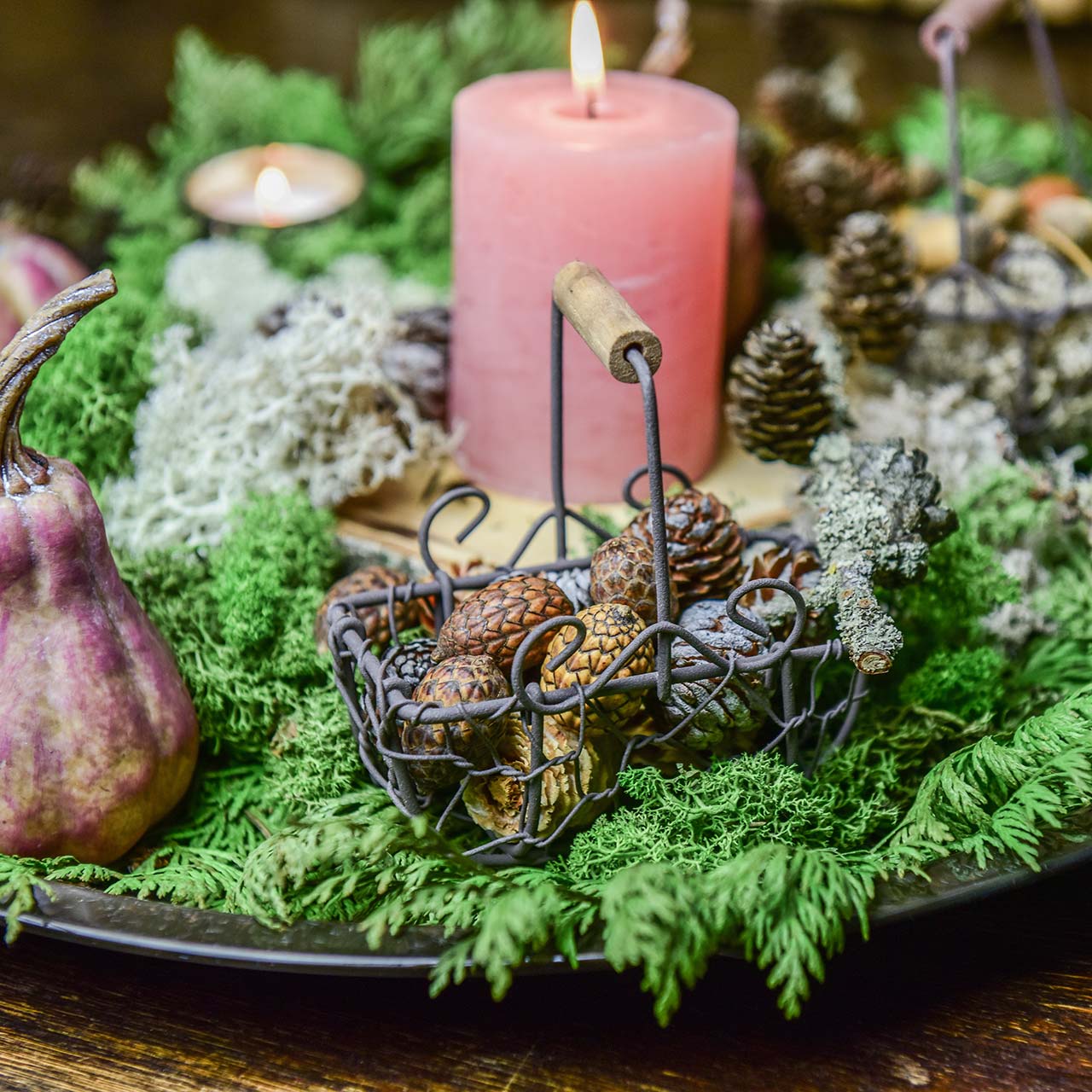 Las cestas de alambre pequeñas en tamaño miniatura tienen un diseño tan detallado como las cestas de metal grandes: el marco y el refuerzo están hechos de metal sólido y cubiertos con una resistente malla metálica. El asa de la cesta decorativa de metal va hacia arriba y tiene un asa de madera. Un adorno de metal decorativo curvo se adjunta a cada lado del asa de la cesta. - El conjunto contiene tres formas de cesta: una cesta con asa redonda, un modelo ovalado y un modelo rectangular.