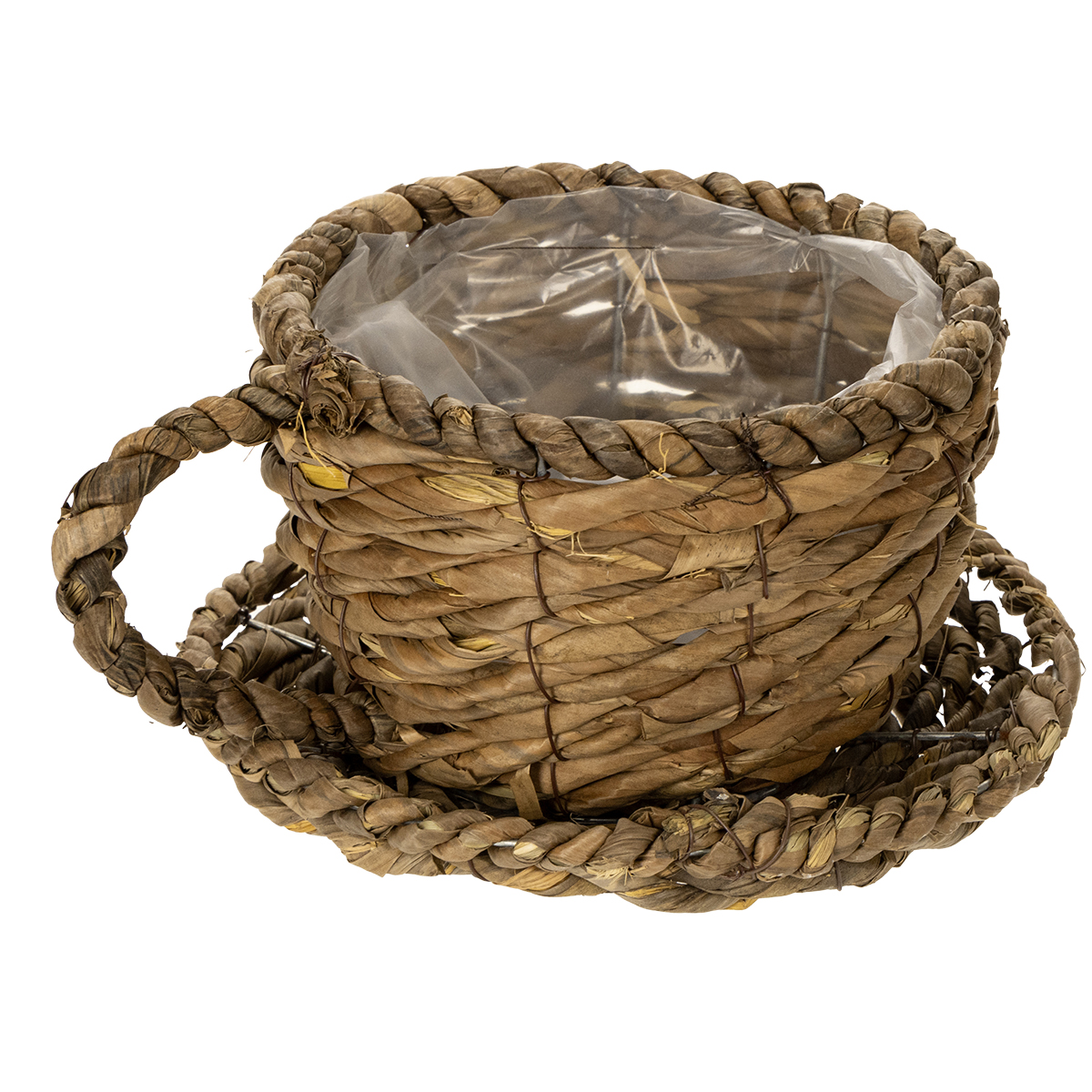 Vaso para plantar con platillo, pequeña cesta de paja para plantar, Ø17cm H13cm