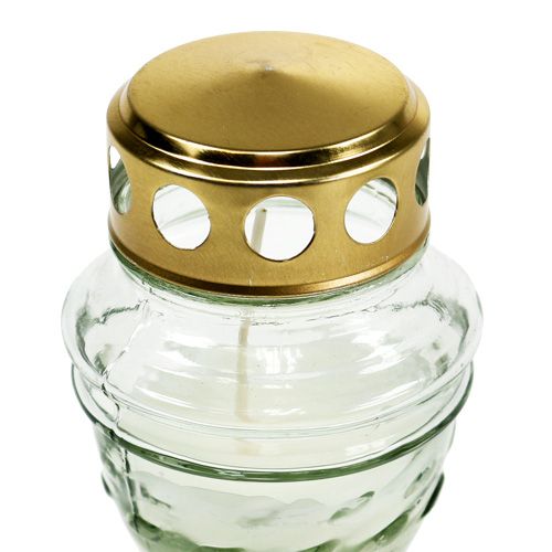 Las luces de la tumba hechas de vidrio transparente y vela blanca son muy adecuadas para un diseño discreto de la tumba. Con una altura de aproximadamente 13 cm, las luces de la tumba encajan discretamente en cualquier diseño de tumba. Debido al color neutro y la forma de las luces de la tumba, también son muy prácticas como la iluminación de la mesa en el jardín en las cálidas noches de verano. Proporcionan luz confiable y una tapa de metal dorado protege la vela del viento y el clima. Las luces graves en el económico paquete de 6 son de carácter neutral y, por lo tanto, versátiles.Tamaño: aprox. Ø7 cm, altura aprox.13 cm