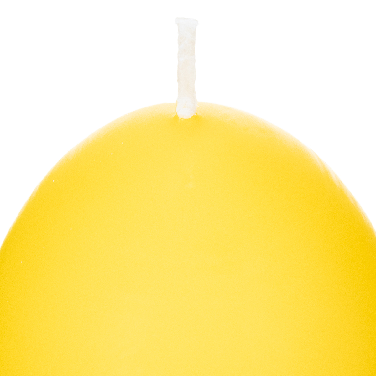 - Práctico juego de 6 velas amarillas en forma de huevo.