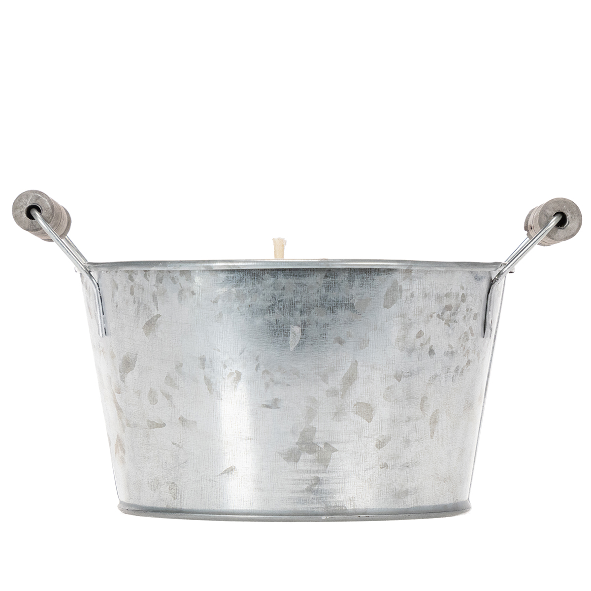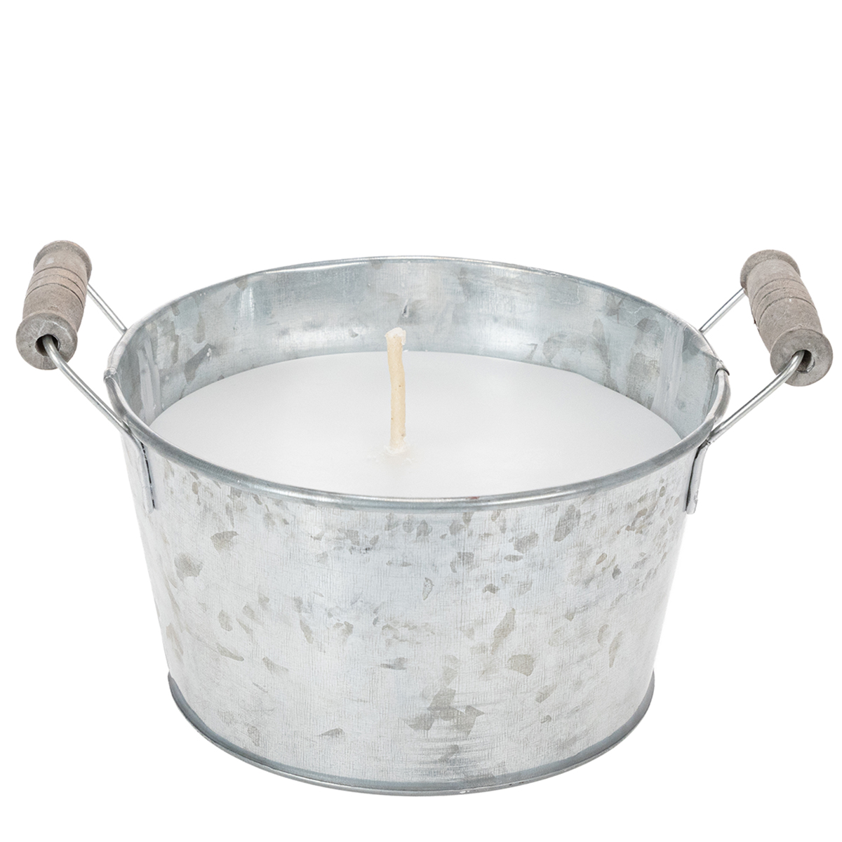 Vela en cubo de zinc para crear un ambiente acogedor en terrazas y balcones (15 cm).