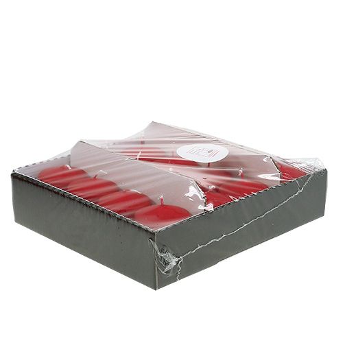 Las velas de pilar de tamaño mediano en rojo se venden como un conjunto de 16 piezas y se entregan en una caja de cartón. Cada vela tiene una altura de aproximadamente 100 milímetros y un diámetro de aproximadamente 60 milímetros.