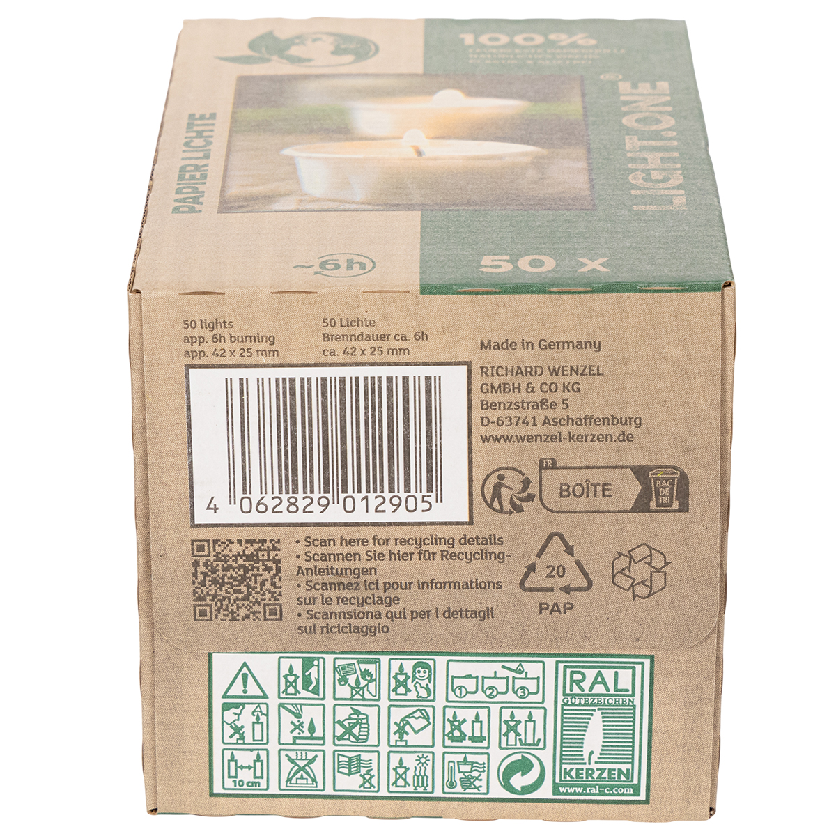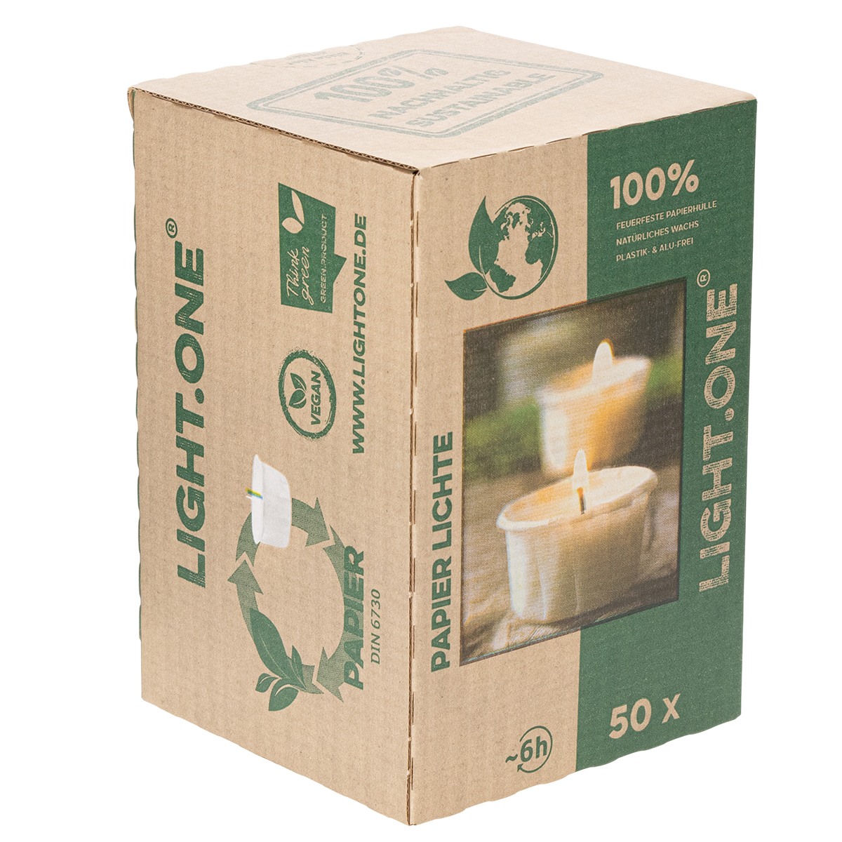 Velas de té en funda de papel para ocasiones festivas y momentos de ambiente Light One 4cm 50uds