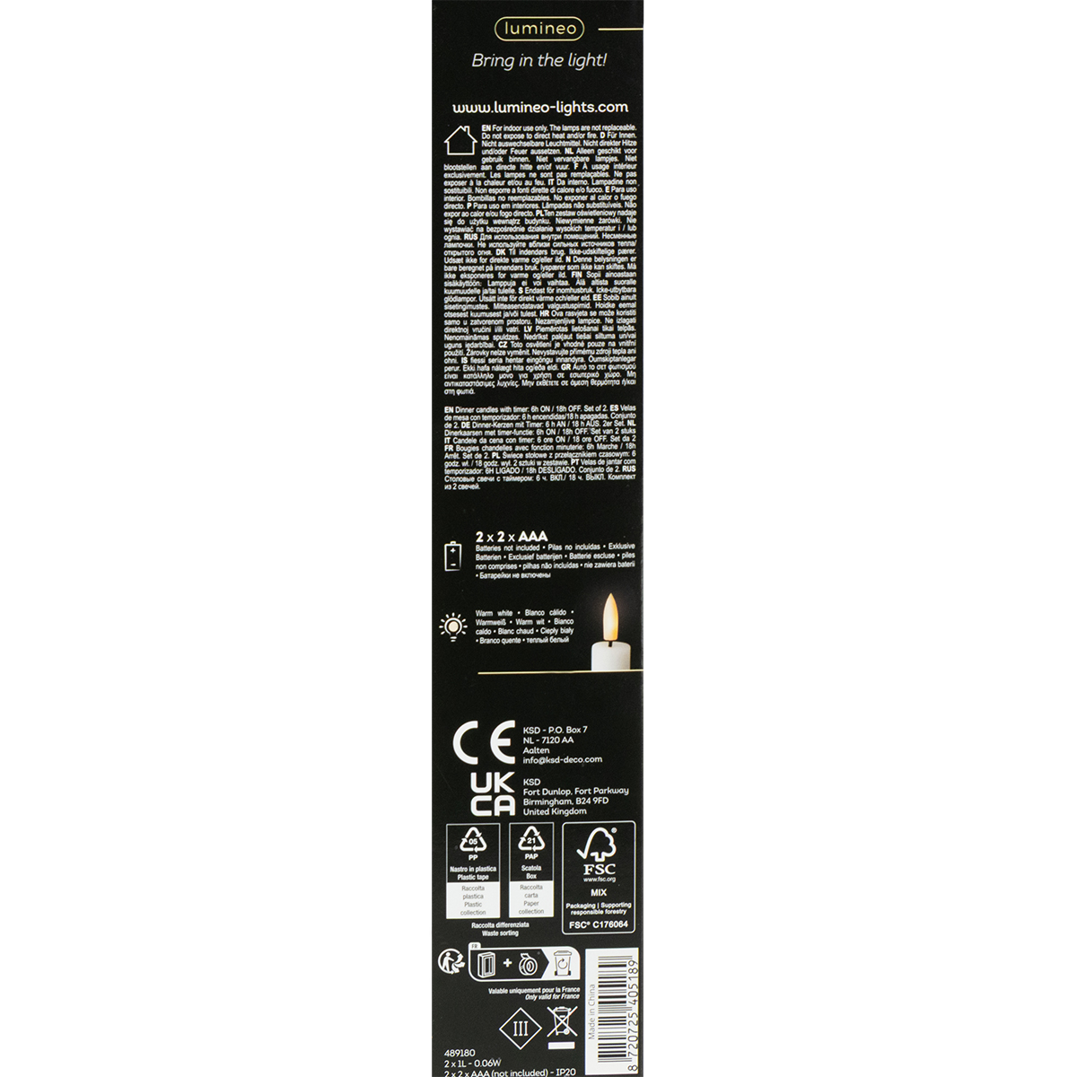 Velas LED blancas cónicas de cera blanca cálida 24,5 cm 2 piezas